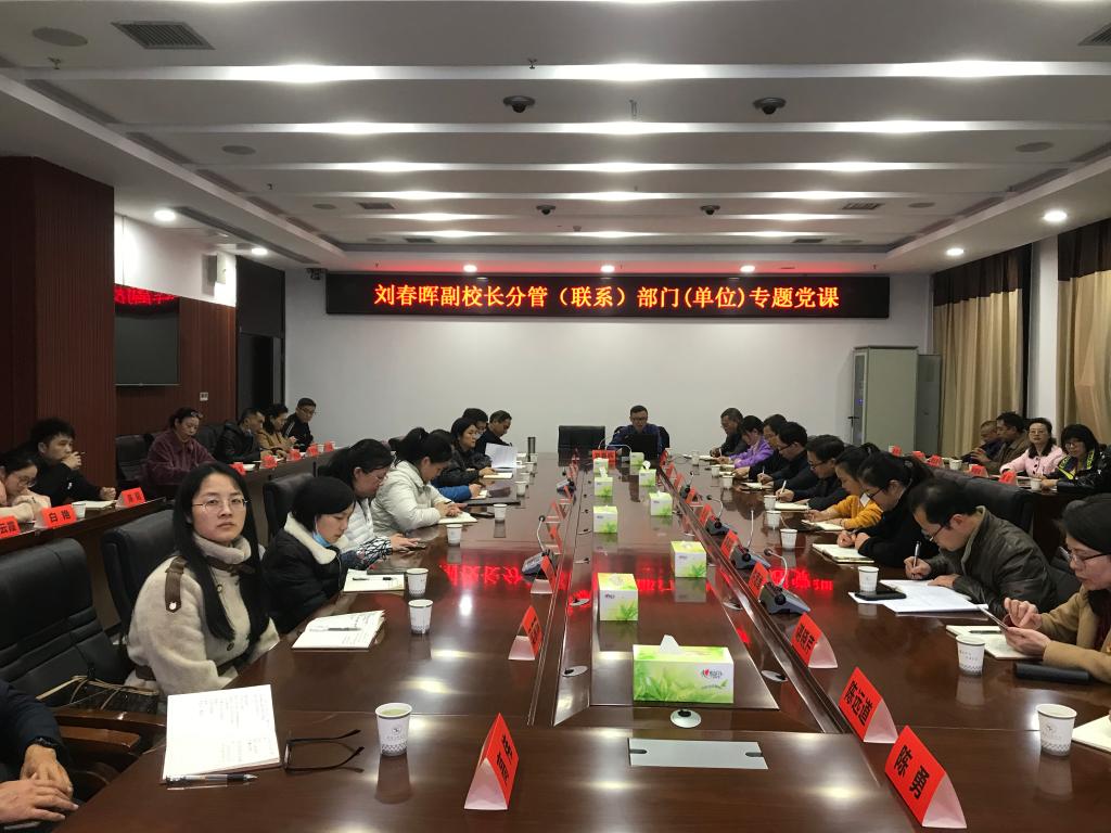 本网讯(通讯员 刘秋红)12月14日晚,学校党委委员、副校长刘春晖在逸夫楼A305给财务处、离退处、教学督评与教师发展中心、经管学院和国际学院科级以上干部上了一堂生动的党课。